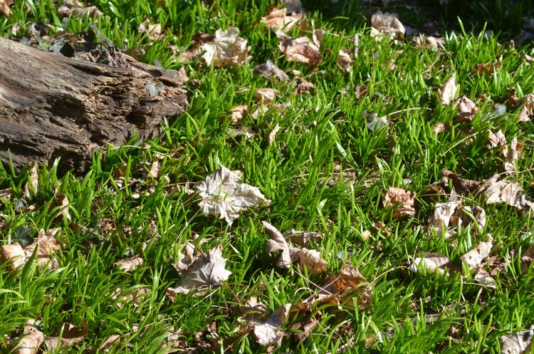 Die Blüten und Blätter der ersten Frühlingspflanzen treiben aus der sich langsam erwärmenden Erde empor und erblicken das Licht der Welt. Auf dem Bild sehen Sie den Seltsamen Lauch (Allium paradoxum), der fast überall in der Berliner Gegend nun aus der Erde sprießt und zu den ersten Frühlingsboten gehört.